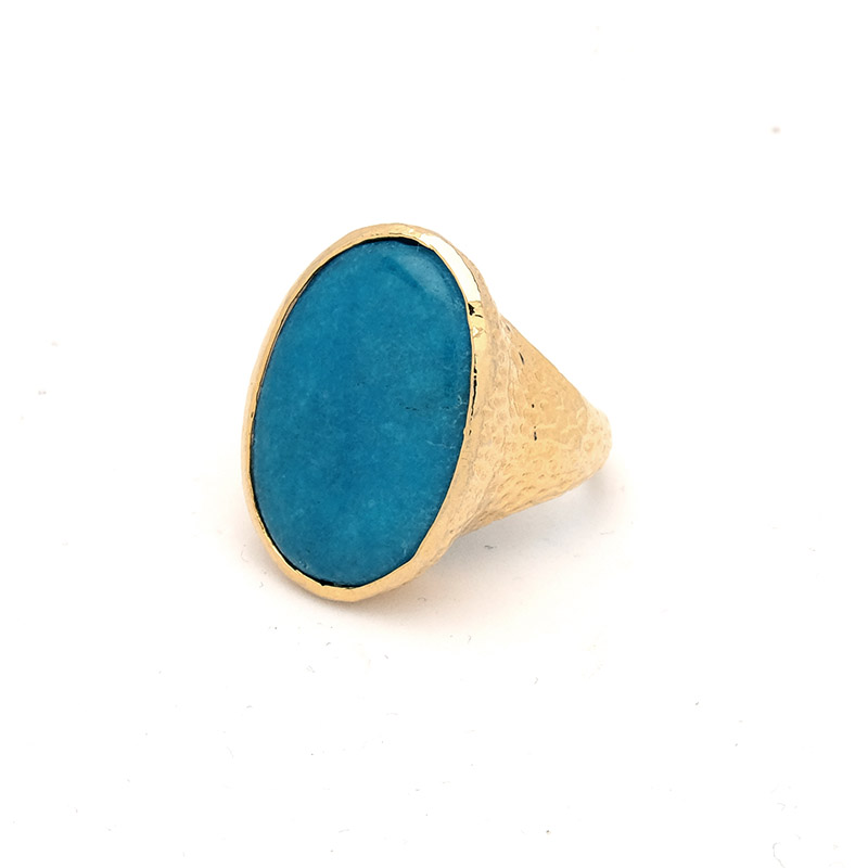 Gold plated forged ring with semiprecious stone, hypoallergenic