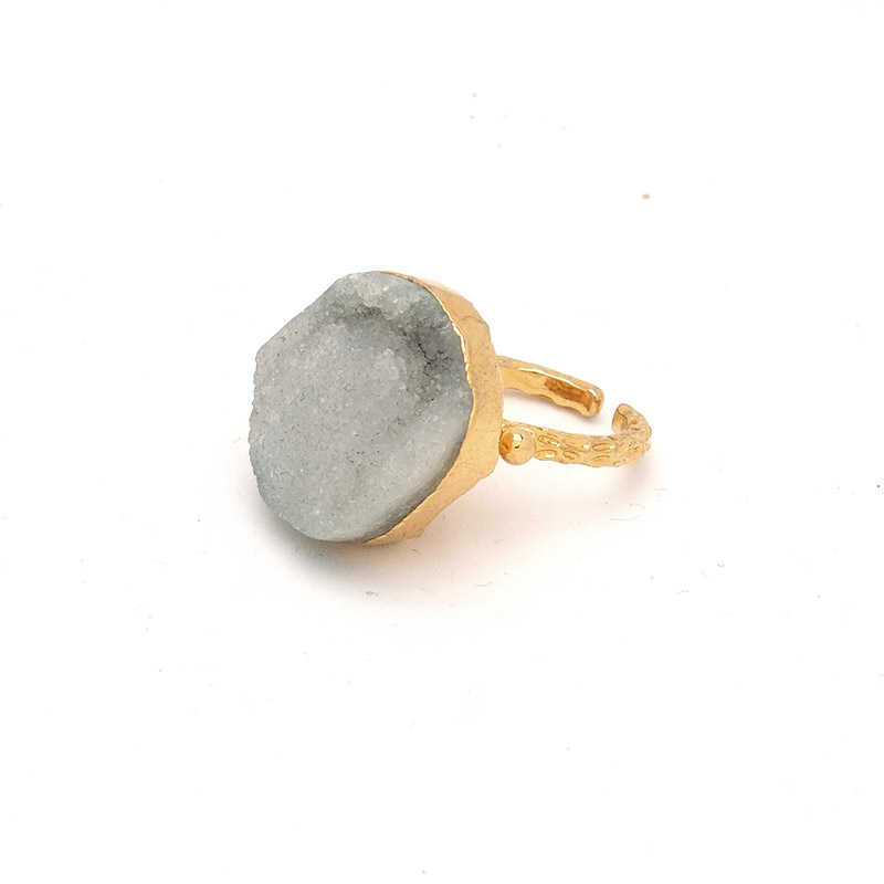 Gilded ring with semi-precious stone white, hypoallergenic, nickel free. It is recommended to avoid contact with chemicals so as not to change its color.