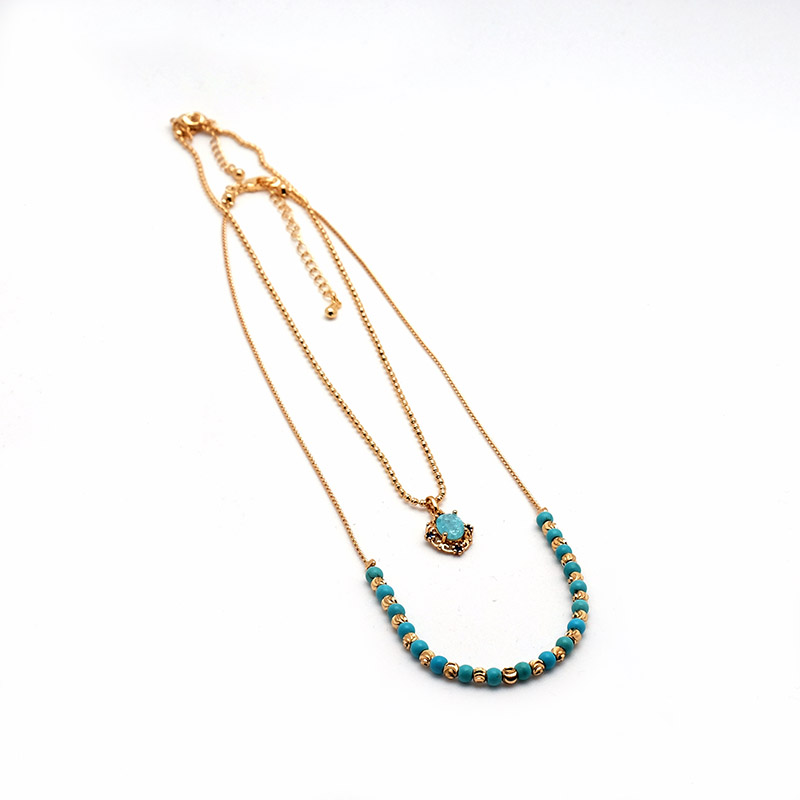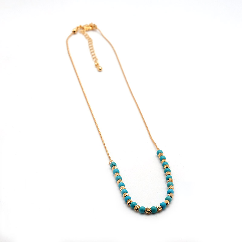 Necklace steel, gold plated, with turquoise stones, hypoallergenic