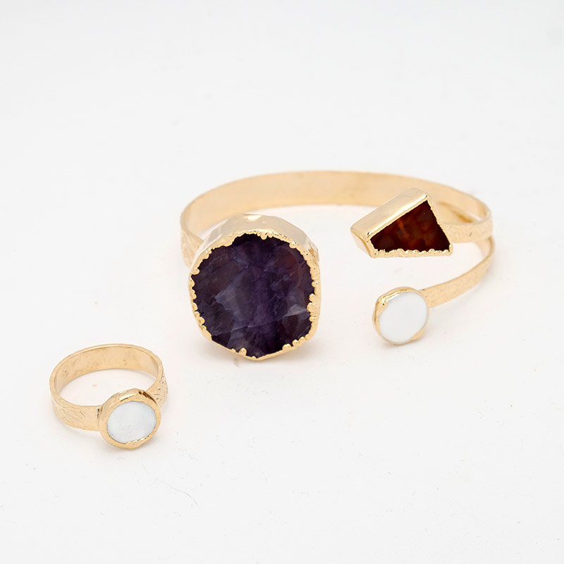 Gilded bracelet with semi-precious stone, hypoallergenic, nickel free. It is recommended to avoid contact with chemicals so as not to change its color.