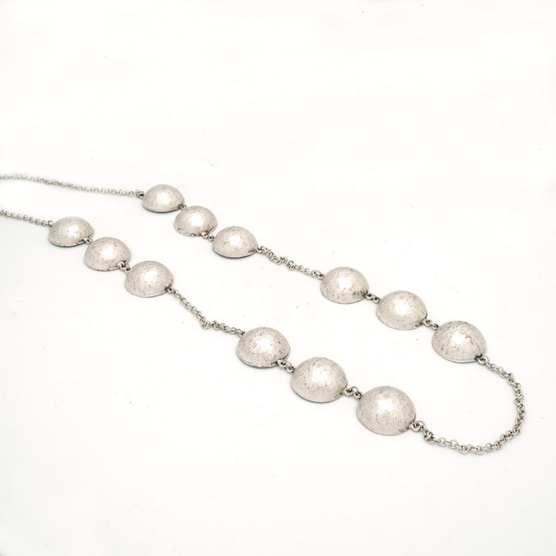 Κολιέ επάργυρο ματ, υποαλλεργικό, nickel free. Συνιστάται η αποφυγή του σε επαφή με χημικά για να μην μεταβάλλεται το χρώμα του.