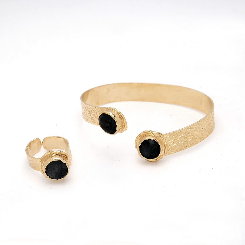 Βραχιόλι σφυρήλατο επίχρυσο με ημιπολύτιμη πέτρα, υποαλλεργικό